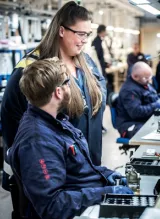 Fram till oktober i år hade man anställt ett 70-tal nya medarbetare. En lagom takt för att hinna med bra introduktioner, tycker HR-ansvariga Emma Ekbäck Nermark, som berättar att de märker av ett stort intresse för försvarsindustrin. Per Linnerblad i ledningsgruppen fyller i: