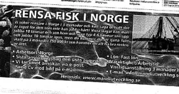 I en jobbannons i Metro söker företaget Mandi utveckling svenska ungdomar för att rensa fisk i Tromsö i Norge. Inget för den som inte kan jobba hårt står det i annonsen, som också berättar att det kan bli fråga om arbetsdagar på upp till 18 timmar.