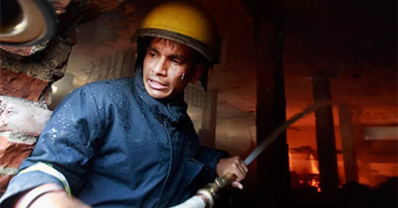 Det var på Standard Groups anläggning i Gazipur, en bit utanför huvudstaden Dhaka, som en brand utbröt i går. Den första branden släcktes, men snart började det brinna igen och den andra branden är fortfarande på fredagen inte släckt, rapporterar TT.