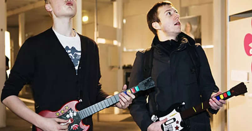 Love Höglund och Lars Schröder spelar Guitar Hero