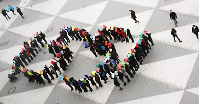 Tillsammans bildade de som hörsammat inbjudan siffrorna 15:51, vilket fick många nyfikna åskådare att stanna upp.