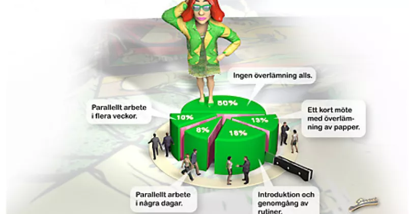 Fyra av tio anser att man "ska kunna betrakta viss kunskap och vissa kontakter som personlig egendom". Bland de högre cheferna är dock denna andel betydligt lägre. De allra flesta höga chefer, åtta av tio, har själva varit med om vad de betraktar som en dålig överlämning. Den erfarenheten delas också av majoriteten av de som är på lägre positioner och har haft en kortare karriär. Vi frågade: