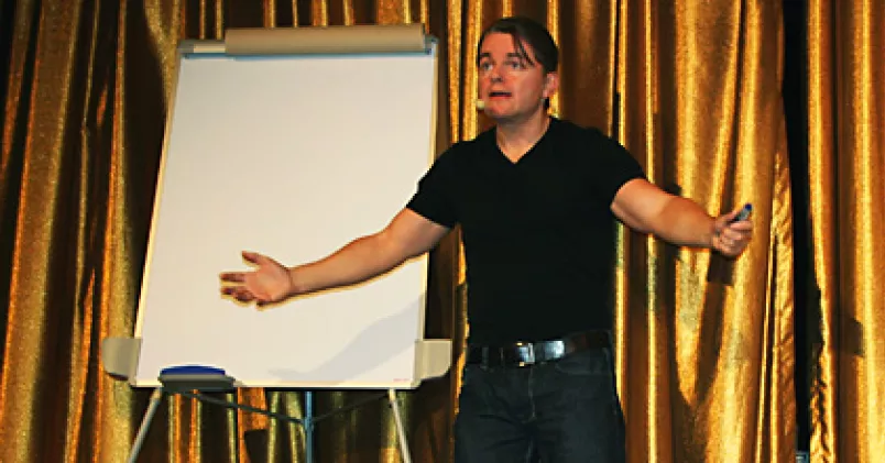 - Vår kongress har beslutat att vi ska må bra både på och av jobbet. Det innebär att vi ska bedriva en aktiv arbetsmiljöpolitik, men allt handlar inte om övertid eller om ergonomiska stolar, sade ombudsmannen Thomas Fahrenholz, när han förklarade varför Unionen Uppland valt att fira internationella kvinnodagen, en dag i förväg, genom att bjuda medlemmar på ett seminarium med Fredrik Paulún.