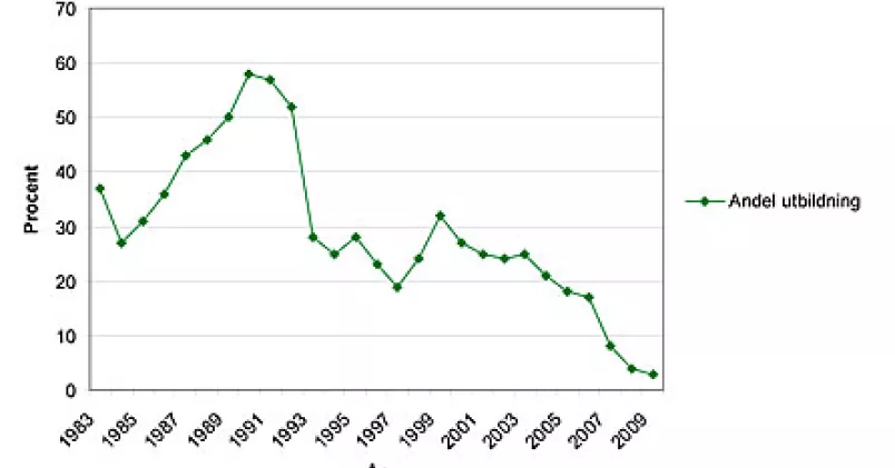 Idag ordnar Arbetsförmedlingen utbildning åt tre procent av de arbetslösa i åtgärder. Fram till 2003 var siffran omkring 25 procent.