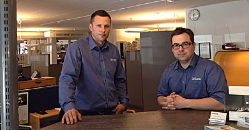 - Vi tålde inte varandra när jag började jobba här. Jag tyckte inte om hans person och han tyckte att jag var en mes. Men sedan skulle Ola lära upp mig till kundmottagare och vi blev vänner. Nu umgås vi både på jobbet och fritiden, säger Marcus Bagan.
