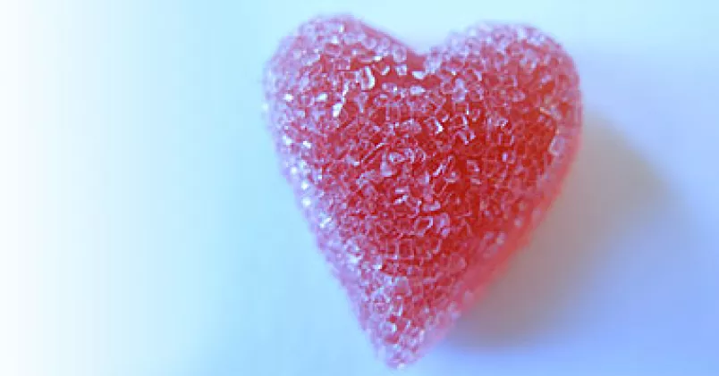 Kollegas redaktion gratulerar och skickar en ask geléhjärtan med posten.