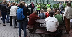 Klockan tolv på torsdagen var konflikten ett faktum. På gården utanför LRF Medias kontor i Stockholm samlades en stor skara strejkovana medlemmar.