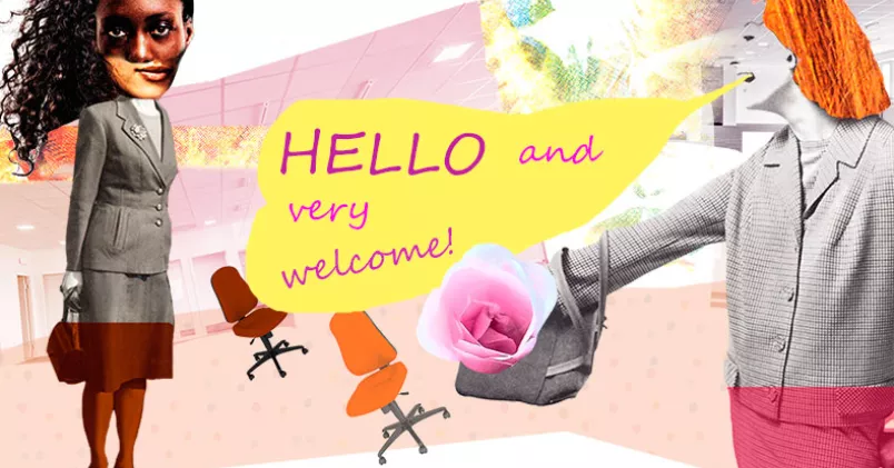 Vi tar ett exempel för att förstå. Det är första dagen på nya jobbet för en person, vi kan kalla hen för Kim. På förmiddagen kommer en kollega från en annan avdelning förbi den nyanställda. De har aldrig träffats förr.
