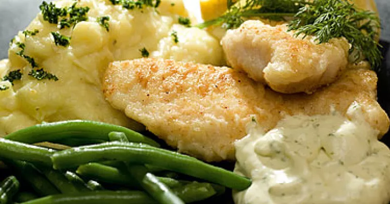 Ta ut fisken på morgonen. Torka fiskfilén med hushållspapper. Lägg lite mjöl på en tallrik och doppa filén i mjölet. Det gör att det blir fin stekyta. Ta fram en teflonpanna. Lägg i smör. När smöret nästan smält, lägg i fiskfilén. Salta och peppra. Stek i 3 minuter på ena sidan och vänd. Salta och peppra igen och stäng av spisen. Ställ pannan åt sidan med locks på. Vänta i 2- 3 minuter innan upplägg.
