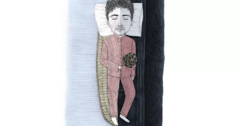2. Du ligger stilla i en hammock kläddmed svart sammet i ett becksvart rum.