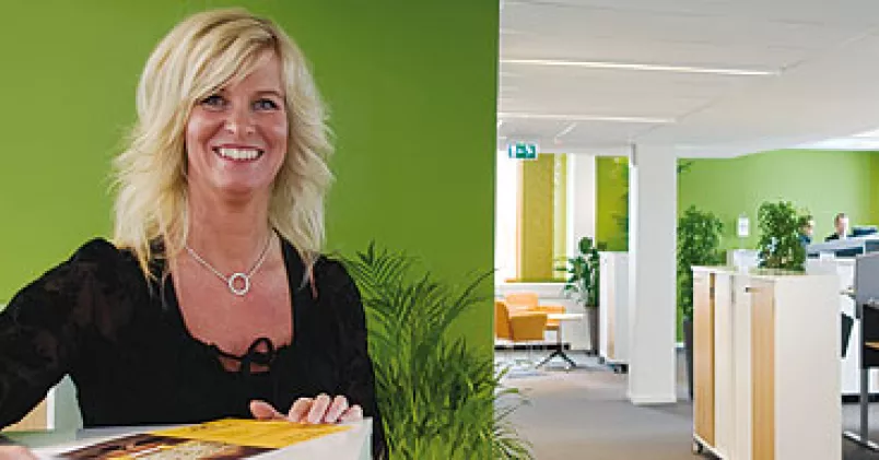 - Nästa vecka har vi öppet hus för våra kunder och leverantörer och det har medfört en del jobb. Vi har renoverat våra lokaler på en våning och slagit ut innerväggarna och numera sitter vi - 112 personer - i öppet landskap. Det var ovant i början, jag har haft eget rum i alla år. Men det är mycket trevligare stämning nu. Folk pratar och skrattar omkring en. Om man hör något som angår en kan man flika in en kommentar direkt.