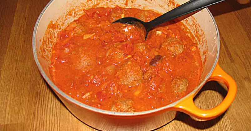 Jag står inte gärna och steker hemmagjorda köttbullar till vardags. Däremot att koka dem i tomatsås är mycket enklare och mindre osigt.
