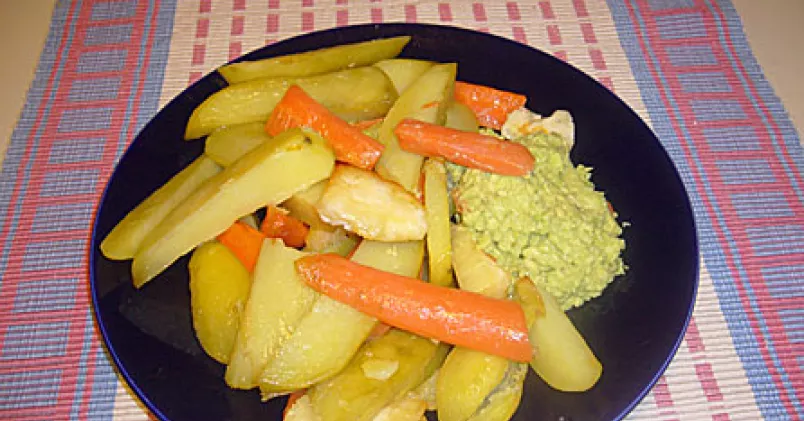 Olja en ugnsplåt och skär potatisen, morötterna och palsternackan i lagom stora klyftor. Hacka hallomiosten i mindre bitar och häll över. Ställ in i ugnen på 200 grader i cirka 30 minuter. Dela avokadorna och pressa köttet med gaffel tillsammans med lite pressad citron. Pressa i en eller två vitlöksklyftor och servera tillsammans med de varma grönsakerna.