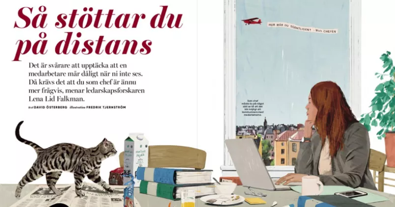 ”Med en imponerande känsla för detaljer i finstämda färger och med stor skicklighet fångar illustratören känslan av ensamhet, utsatthet och vemod.” Så lyder en del av prismotiveringen till illustratören Fredrik Tjernströms bild i Chef & Karriär, nr 3 2020, som illustrerar en artikel om hur chefer bäst kan stötta sina medarbetare på distans.