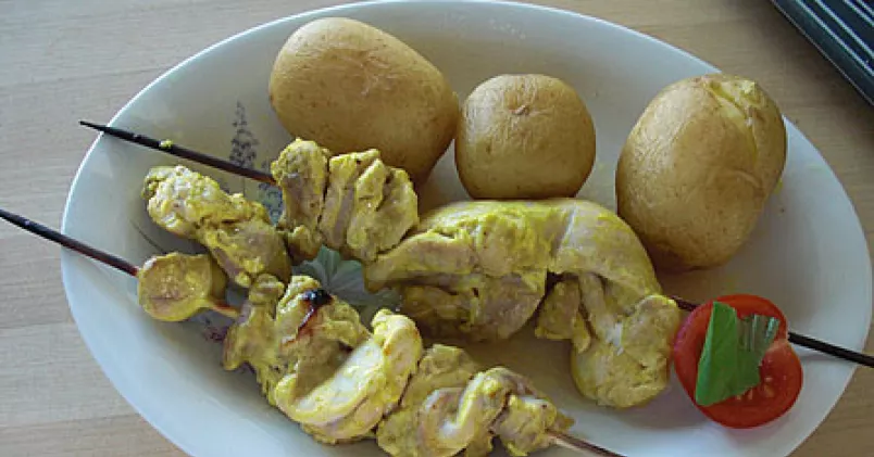 Rör ihop lite gräddfil med kryddor, till exempel curry, salt och peppar. Servera med potatis eller ris och gräddfilsröran.