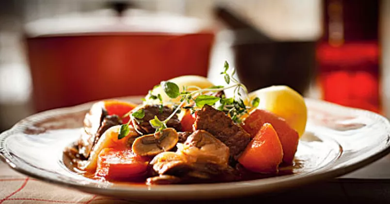Låt puttra tills köttet är mört  och grytan fått lagom konsistens. Om såsen är för vattnig kan du röra i lite maizenaredning. Servera med ris eller potatis.