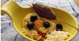 Köttfärsspett med äppeltzatziki och bulgur