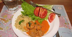 Här är ett försök att variera de vardagliga köttbullarna. Enkelt om man har grillad och marinerad paprika på burk hemma. Jag har prövat att servera bullarna till både spagetti och couscous och det är lika gott.