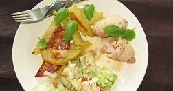 Tunnskivad kycklingfilé är ett bra påfund tycker jag. Fyll filén med det du tycker om, rulla ihop, stek den och så är det klart. Här låter jag den koka en stund med crème fraiche och buljong. Smaskigt.