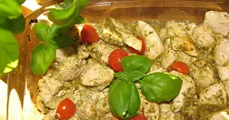 Det här är en snabbrätt som dessutom känns nyttig. En vardagkväll tar jag gärna färdigköpt pesto men annars kan man ju lätt göra pesto själv. Då brukar jag mortla vitlök, salt, peppar, basilikablad och pinjenötter till en smet. Jag rör sedan i olivolja och parmesanost.