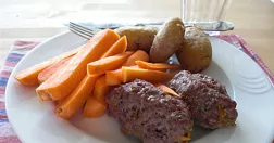 Om man vill kan man riva i rödbetor eller morötter till dessa rårakor. Stek så att det blir en ordentlig stekyta på första sidan innan du vänder. Annars blir det lätt kladdigt. Jag serverade dessa med keso och en klick pesto för lite medelhavssmak.