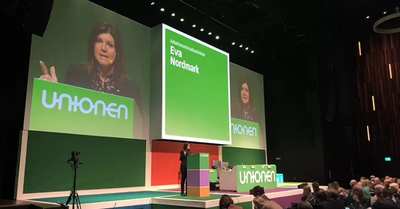 Eva Nordmark (S) var ordförande för TCO mellan 2011 och 2019. Och det var i den egenskapen hon bjöds in att tala under Unionens kongress som just nu pågår i Malmö. Nu blev det i stället i rollen som arbetsmarknadsminister. Martin Linder, ordförande för Unionen, passade inför hennes tal på att berätta om hur hon blev tvungen att ljuga för TCO:s styrelse innan det var officiellt att hon utsetts till minister.