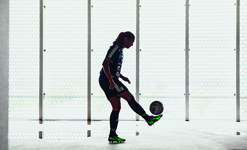 Emma Lennartsson jobbar halvtid utöver fotbollen för att få ihop ekonomin. Foto: John Sandlund